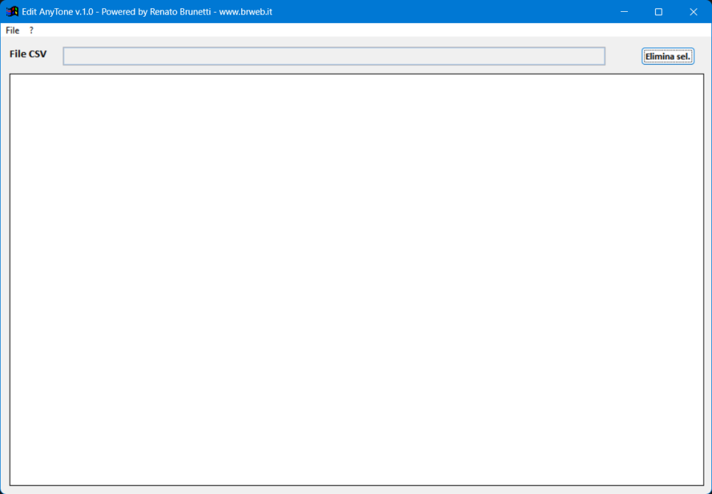 Edit AnyTone è un software per import e manipolazione channel per l'apparato AnyTone D878. Ha un interfaccia semplice ed immediata che consente di importare un tracciato csv, eliminare elementi ed esportare il tutto in un nuovo file csv prontio per l'importazione.