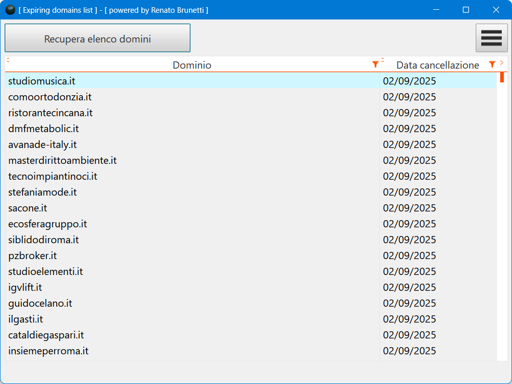 Expiring Domains List è un tool per Windows progettato per recuperare e raccogliere automaticamente gli elenchi dei domini in scadenza o in fase di dismissione relativi agli ultimi 5 giorni.